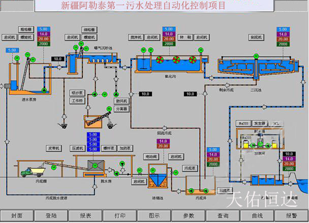 系統(tǒng)概述 污水處理為了使得排出的污水經(jīng)過處理達(dá)到某一水體或再次使用的水質(zhì)要求。一般分為生活污水處理和生產(chǎn)污水處理。新疆阿勒泰第一污水廠的自動化控制系統(tǒng)是基于現(xiàn)代智能化工廠的先進思想,采用分散控制、集中監(jiān)測管理的控制方式。天佑恒達(dá)工控自動化控制系統(tǒng)應(yīng)用于污水處理廠,完全能滿足污水處理工藝的要求,提供了一種高可靠性、低成本、更優(yōu)化的控制方案。
